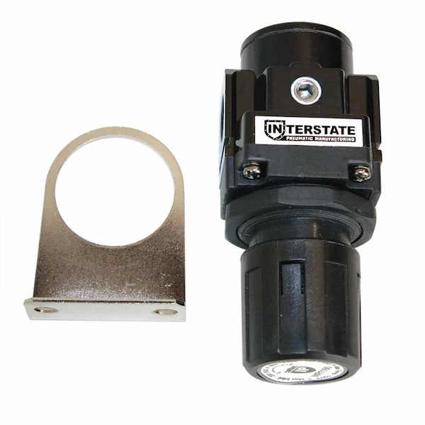 Interstate Pneumatics 3/8" Standard Regulator Inlet 200 psi - Outlet 125 psi. Pneumatic equipment that operates at higher than recommended pressure can cause excess torque, force and wear and can waste compressed air. This unit regulates air pressure of the air-line to prevent damage. Provides fine air control for spray guns and air tools. It adopts balanced inlet with relief device. It has the advantage of stable pressure, high precision, quick reaction & firm lockup. It can be freely combined with other air source treatment products.