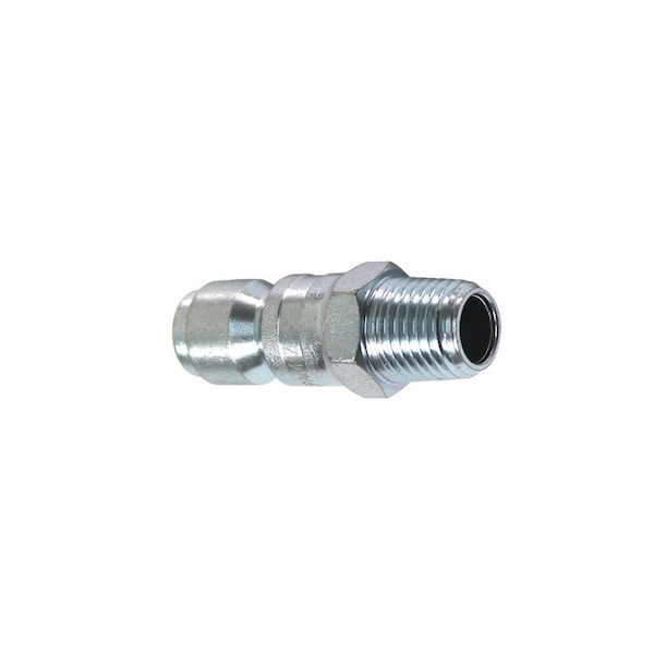 Interstate Pneumatics CPA641Z 3/8 Inch x 1/4 Inch MPT Auto Coupler Plug Reducer - Silver. This series plugs are forged from tool steel, heat treated and zinc plated to increase hardness, durability and corrosion resistance. These plugs are interchangeable with the automotive (Tru-flate) standard series plugs produced by other manufacturers. Maximum operating pressure 300 PSI.