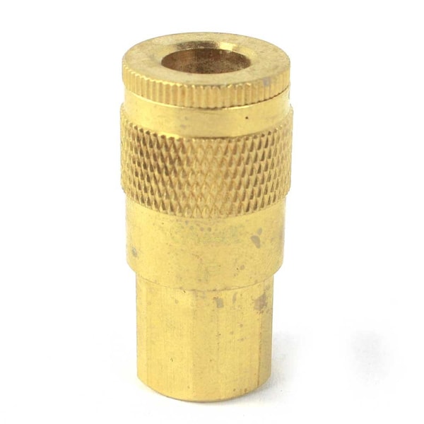 Interstate Pneumatics 1/4 Inch Automotive Brass Coupler x 1/4 Inch Female NPT. These couplers are interchangeable with the Automotive (True-Flate) Standard series couplers produced by other manufacturers. Precision machined from solid brass bar stock which provides longevity during mechanical shock in rugged applications. Maximum working pressure 300 PSI.