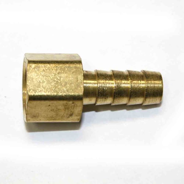 Brass Hose Fitting, Connector, 3/8 Inch Barb x 3/8 Inch Female NPT End, PK 6
