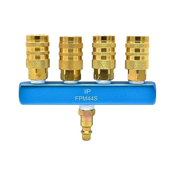 (4) CH441BS 1/4 in Steel Industrial Couplers, CPH441 1/4 in Brass Industrial Plug, FPM44S Aluminum Rectangular Style Manifold