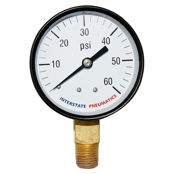 Interstate Pneumatics G2022-060 Pressure Gauge 60 PSI 2 -1/2" Diameter 1/4" NPT Bottom Mount.
