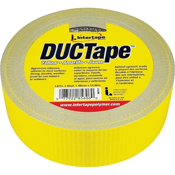 Duct Tape, 60 yd L, 1.88 in W, Polyethylene-Coated Cloth Backing, Yellow