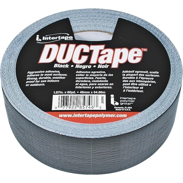 Duct Tape, 60 yd L, 188 in W, PolyethyleneCoated Cloth Backing, Black