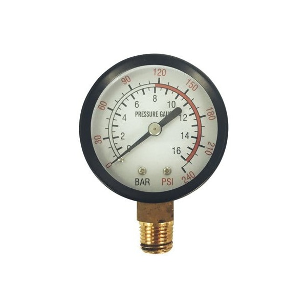 Master Mechanic, 0250 PSI Gauge, 18 NPT Male Lower Mount, Pressure Gauge, PreApplied Teflon Thread Sealant
