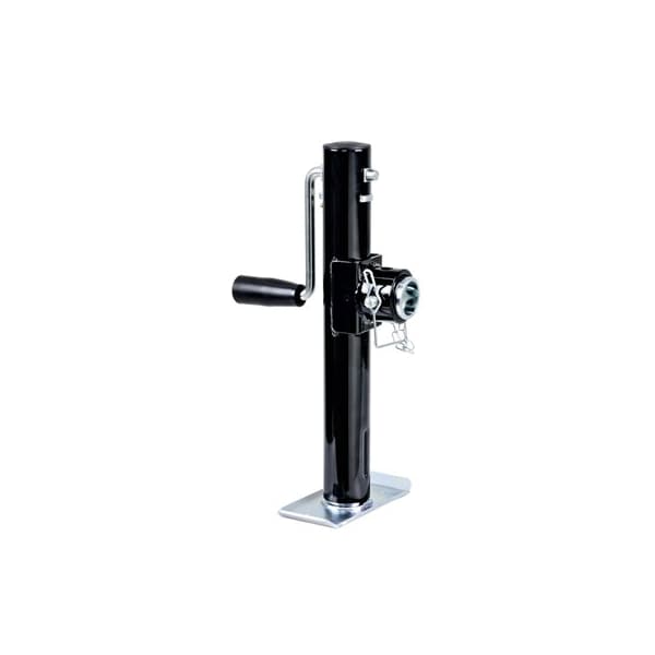 Master Mechanic, 2,000 LB, Side Wind Trailer Jack, Side Wind, 10 Travel, 108 Retracted, 208 Extended, Weld On Tubular Mount With 916 Pin Foot Plate, Male Mating Mount Included, Maximum Capacity Static 3,000 LB Lift 2,000 LB