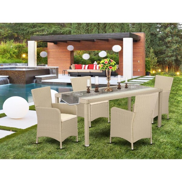 5 Piece Luneburg Back Yard Wicker Dining Set - Cream (Discontinued)
