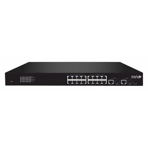 PoE Switch, Product Type PoE Switch, Number of IP Camera Inputs 16, Maximum Input Voltage 100/240V AC, Maximum Output Voltage 54V DC, Mounting Location Desktop, Rack, Color Black, Features 16X10/100Mbps Ethernet Ports, 2Xgigabit Combo Port (RJ45 and SFP), 820 ft Transmission Distance on Extend Mode, All 100Mbps Ports Support PoE, Input Type (16) Port PoE, Material Metal, Maximum Operating Temperature 104 Degrees F, Minimum Operating Temperature 32 Degrees F, Overall Depth 11 in