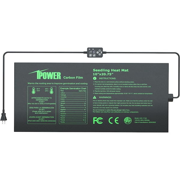iPower 10inx20.75in Seedling Heat Mat with Built-in Temperature Controller, MET Certified Waterproof Plant Heating Pad, for Germination, Breeding, Brewing