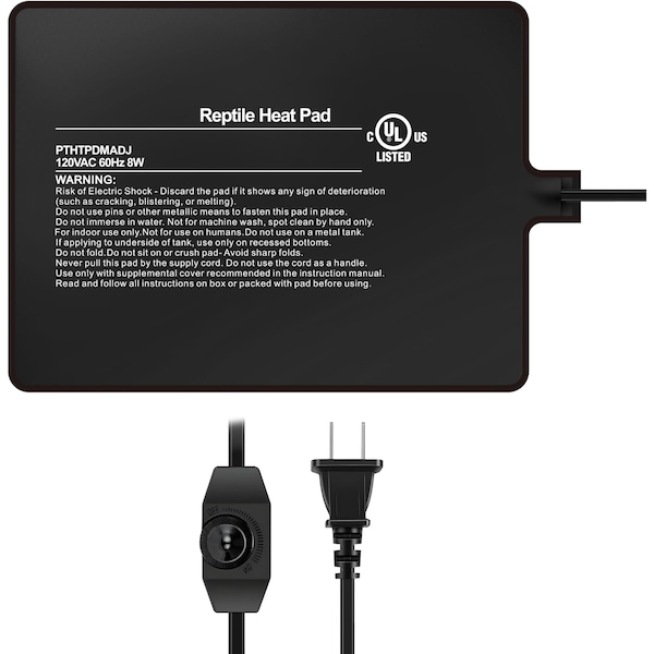 * Specifications: 6" x 8" size, 120 volts, 8 watts, 6 ft power cord. package included: 1 pack 6" x 8" reptile heating mat with temperature controller