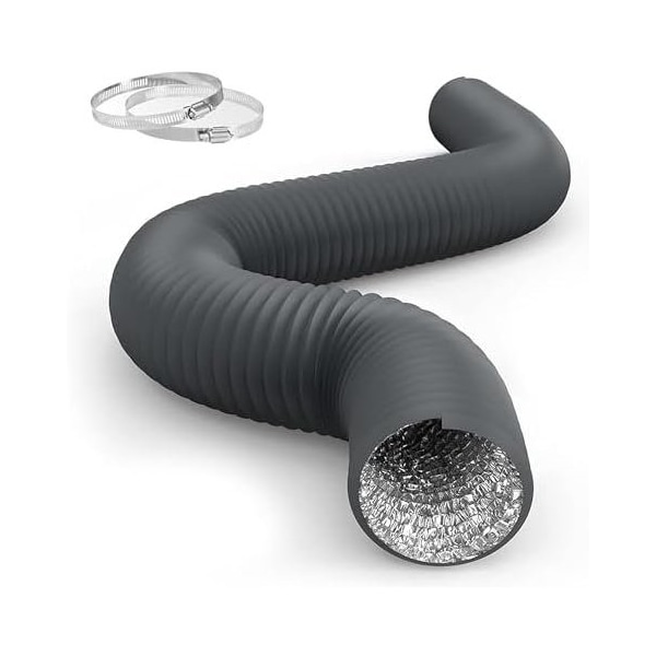 HealSmart 4 Inch 8 FT Flexible Aluminum Ducting, Including 2 Clamps and 4 Layers of Protective Dryer Exhaust Hose for HVAC Heating Cooling Ventilation and Vent, 1-Pack, Gray