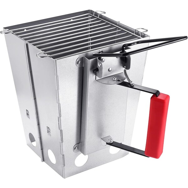 YSSOA Portable Charcoal Chimney Starter Foldable, Collapsible, Silver
