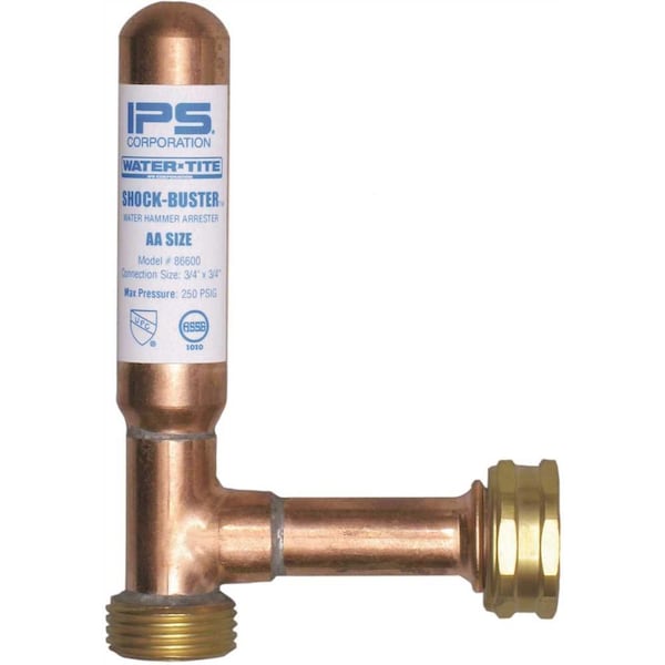 Eliminate water hammer in residential and light commercial supply lines with Water-Tite Shock-Buster Hammer Arresters. Ignoring water hammer can lead to costly damage within any plumbing system. Hammer arresters absorb sudden pressure changes to keep the pipes from banging, providing continuous and maintenance-free protection against water hammer. These AA single-fixture-size arresters can be installed at any angle, and it is recommended that they be located as close to the valve as possible no more than 6 feet away. Shock-Buster Hammer Arresters are approved for sealed-wall installations no access panel required and are guaranteed for the lifespan of the plumbing system. Choose from standard or lead-free arresters in a variety of connection types to fit any installation requirement.Hammer arrester for residential and light commercial supply lines; AA single-fixture sizeAbsorbs pressure to keep pipes from banging; prevents costly damageCan be installed at any angle; should be no further than 6 feet from valveApproved for sealed-wall installations; no access panel requiredUPC listed; ASSE Certified to ANSI/ASSE 1010-2004 Standard; conforms to IPC-2006Absorbs shock and vibrations
