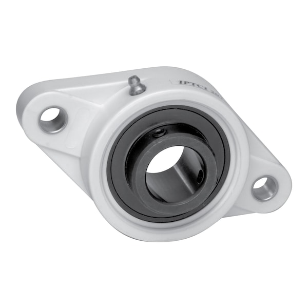 2-Bolt Flange Ball Bearing Mounted Unit, .5 in Bore, Thermoplastic Housing, Black Oxide Insert, Set Screw Locking, Lubed for Life