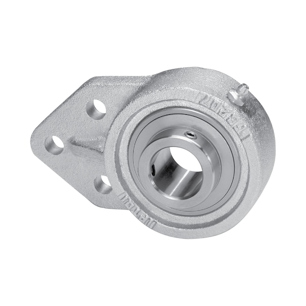3-Bolt Flange Ball Bearing Mounted Unit, 1.4375 in Bore, Nickel Plated Housing, Hard Chrome Coated Steel Insert, Set Screw Locking