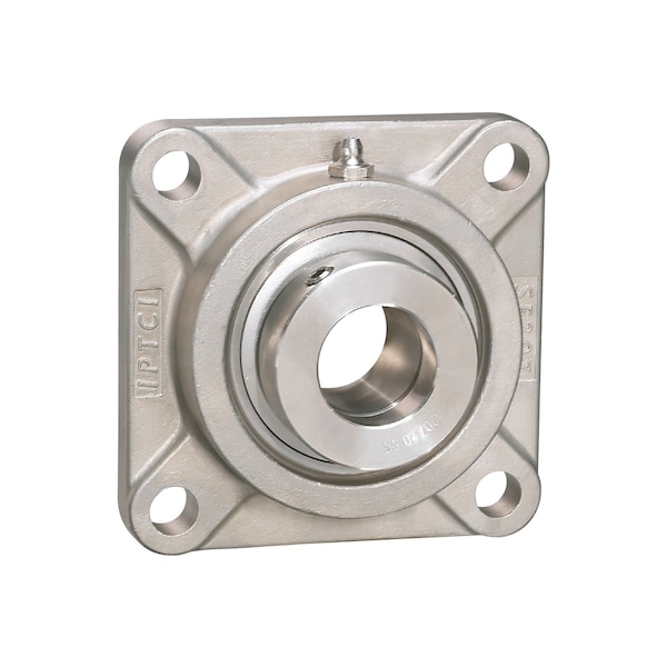 4-Bolt Flange Ball Bearing Mounted Unit, 1.25 in Bore, Stainless Steel Housing, Stainless Steel Insert, Eccentric Collar Locking
