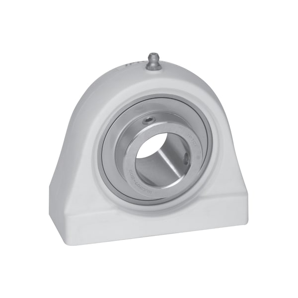 Tapped Base Pillow Block Ball Bearing Mounted Unit, 1.25 in Bore, Thermoplastic Housing, Stainless Steel Insert, Set Screw Locking, 2 Triple Lip Seals