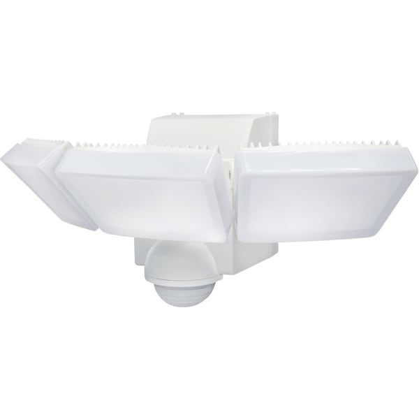 White 1200 Lm. LED Motion Sensing Battery Operated 3-Head Security Light Fixture