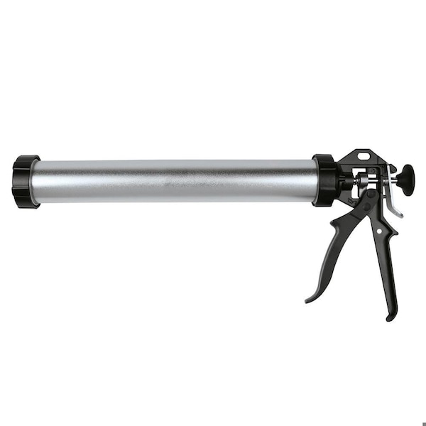 Aluminum Barrel Caulk Sausage Gun with ergomatic trigger, rotary barrel, heavy duty thrust block. Works with 10oz cartridges, 10oz or 20oz sausage packs, 14:1 Thrust Ratio for medium and high viscosity sealants