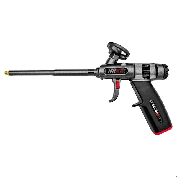 Professional Grade PU Foam Gun with rubber handle, fully PTFE coated so stick resistant, tapered tube for high stability, precise foam flow, trigger lock so you can leave the can on the gun without the risk of foam spraying everywhere. 2 brass nozzles come inside the handle to use for foaming in tight spots. Works with all polyurethane can foam