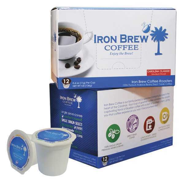 Coffee, Net Weight 4.8 oz, Beverage Package Style Pod, Coffee Roast/Tea Type Medium, Package Weight 0.4 oz, Sub-Brand Iron Brew, Beverage Flavor Carolina Classic, Product Type Coffee, Caffeine Type Caffeinated, Beverage Format Ground, Package Quantity 12