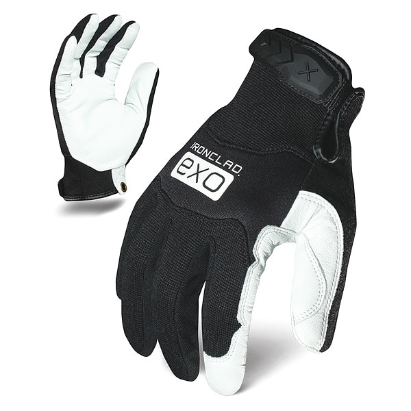 EXO Mechanics Gloves, White Goat Leather Palm, Polyester Back, S, Black/White