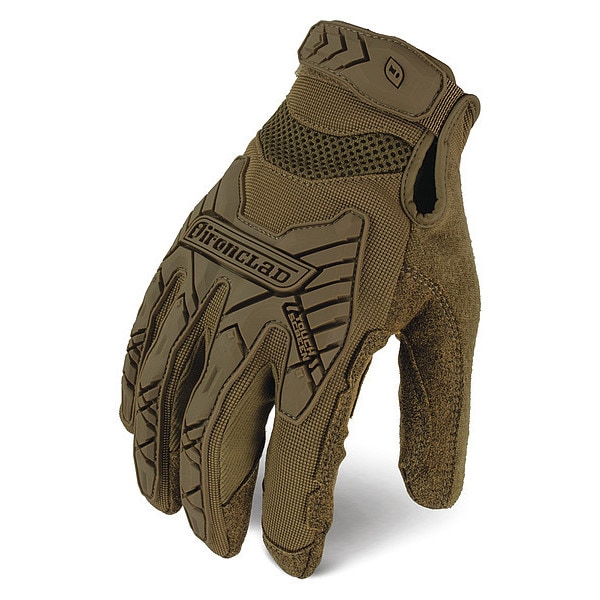 Tactical Gloves, M, Brown, 9 in, Hook-and-Loop Cuff, Lining Polyester, Nylon Palm Material, Polyester Back Material, Thermoplastic Rubber Knuckle Padding Material, Not Applicable Cut-Resistant Material, Nylon Stitching Material, Grade of Leather Synthetic, Hook-and-Loop Closure Type, 3D Pattern, Ergonomic Cut, Wing Thumb Style, Full Finger Finger Style, Standards ANSI 105, CE Rated, EN 388:2016, TAA Compliant, ANSI/ISEA Abrasion Level 3, ANSI/ISEA Cut Level A2, 1 Pair