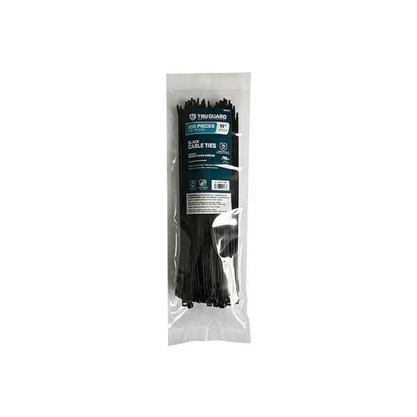 Tru-Guard 100 Pack 11 Black Nylon Cable Tie 75 Lb Tensile Strength Self Locking Bagged.