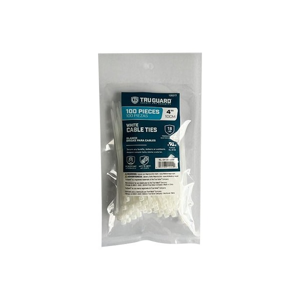 TRU-GUARD 100 Pack 4 White cable tie nylon 18lb tensile strength self-locking bagged