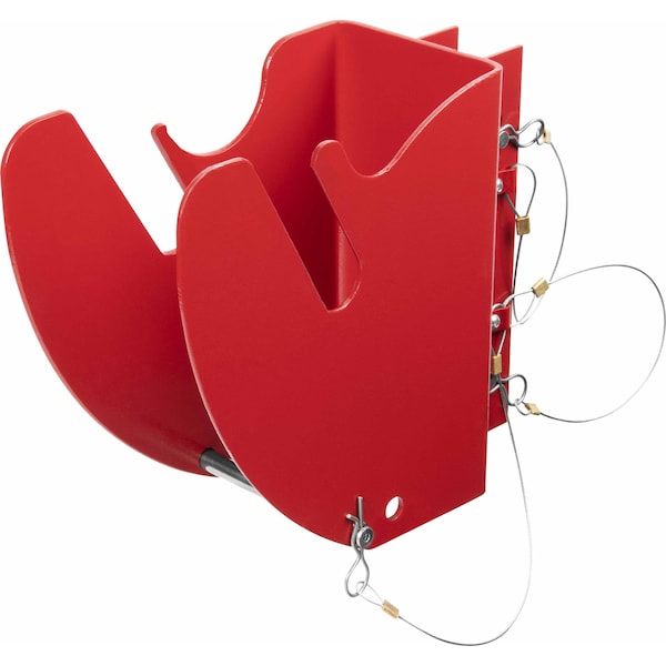 The Ironwear 2956 3-Way SRL Block Mounting Bracket holds the Ironwear 2955 3-Way SRL Block. Features two attached free-falling cotter pins and clevis pins that secure the bracket in place after SRL is mounted onto tripod leg.