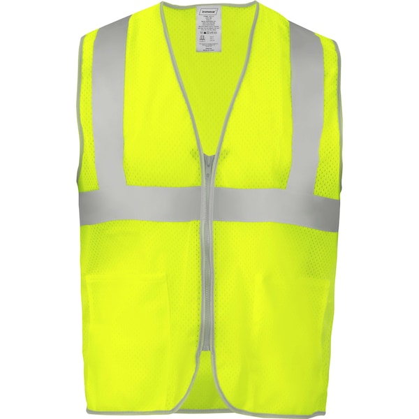 The Ironwear 1231 safety vest is the definitive model of high-visibility PPE for use in low-light or moderate-traffic areas. With 2 in silver reflective tape around the torso and over the shoulders, this vest meets ANSI/ISEA 107 Class 2. The 100% polyester mesh material is durable but lightweight and comfortable for all-day use, while the zipper front closure allows for easy on and off. Also included are 2 front waist pockets for added workplace utility. This safety vest is ideal to improve worker visibility in all but the most demanding applications – from construction, high-volume traffic safety and off-road assistance to jogging, cycling, walking or fishing. To clean, simply handwash in warm water and mild detergent, then leave to air dry. For heavy soiling, gently spot clean with a mild soap. Do NOT machine dry. Do NOT use sanitizers or aggressive cleaning solutions such as bleach or acetone. Employing cleaning methods other than those outlined above may shrink the vest, ruin the reflective tape or dim the coloring below safe standards.