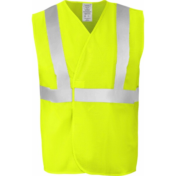 The Ironwear 1269 safety vest is among the most adaptable and dependable choices for high-visibility work gear. Made from 100% polyester mesh fabric, this Type R vest is both durable and comfortable for use through tough working conditions and long hours, with a hook and loop front closure for easy on and off. Also included is 2 in silver reflective tape that wraps around the torso and over the shoulders for protection that meets ANSI/ISEA Class 2 standards. This safety vest is ideal to boost visibility during any daytime occupations performed outdoors and away from fast-moving vehicles – from delivery work, parking safety jobs and off-road assistance to jogging, cycling, walking or fishing. To clean, simply machine wash in warm water and mild detergent, then leave to air dry. For heavy soiling, gently spot clean with a mild soap. Do NOT machine dry. Do NOT use sanitizers or aggressive cleaning solutions such as bleach or acetone. Employing cleaning methods other than those outlined above may shrink the vest, ruin the reflective tape or dim the coloring below safe standards.