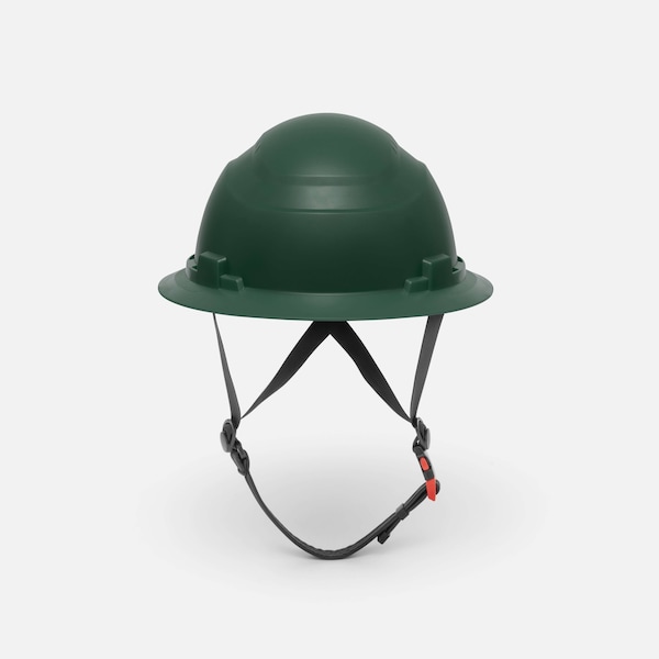 Type 2 Class C Vented Full Brim Safety Helmet w/ Chin Strap, Dark Green