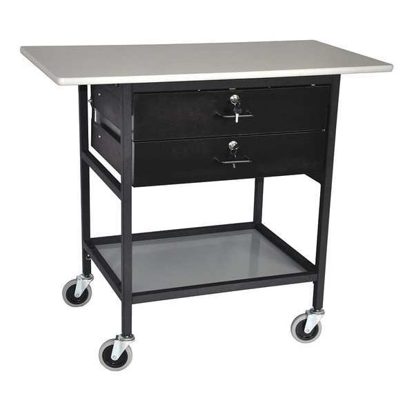Work Table, Height Adjustability Adjustable Height, Number of Shelves 1, Assembly Partially Assembled, Back Stop Height Not Applicable, Color Black, Gray, Edge Shape Radius, Frame Material Steel, Frame Material Finish Powder Coated, Height Adjustment Increments 2 in, Included Components Lower Shelf, Drawers, Includes (2) Locking Drawers and Bottom Shelf, Maximum Adjustable Height 42 in, Minimum Adjustable Height 35 in, Non-Metal Top Thickness 1 1/2 in, Number of Drawers 2, Overall Depth 20 in