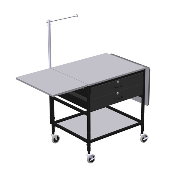 Mobile Table with Drop Leaves, 2 Drwrs, Telescoping Arm & Btm Shlf