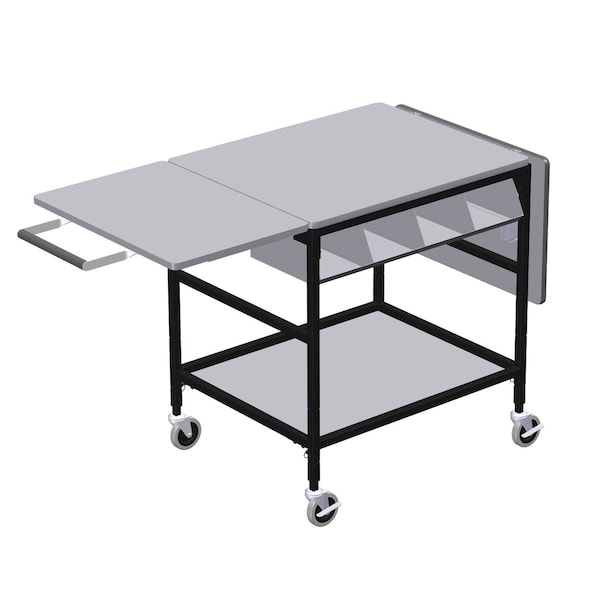 Mobile Work Table w/ Drop Leaves, 4 Comp Org Bin, Hang Bar & Btm Shlf
