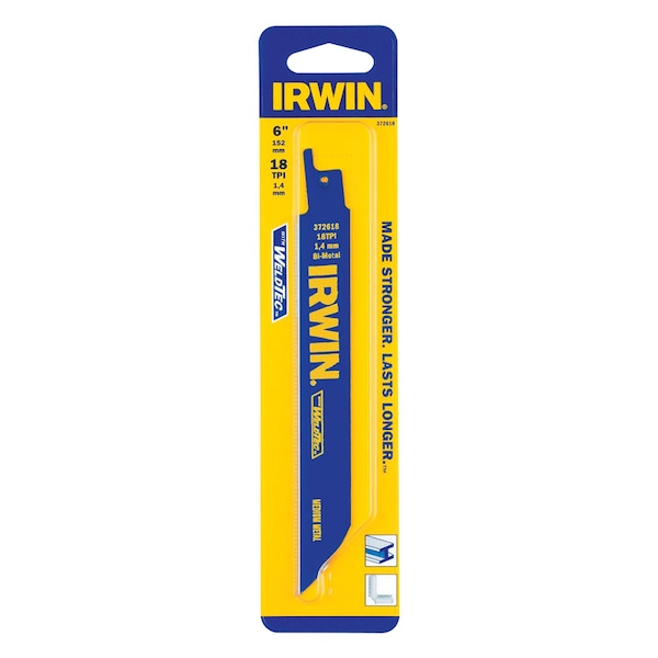 6 inch 18 TPI reciprocating blade electronic beam weld allows for a more powerful bond. Bi-metal blade increases blade life. Applications cuts all metals including non-ferrous pipe conduit stainless and sheet metal. Use with materials 1/16 inch-3/8 inch (1.5 mm-10 mm) thick. Depending on blade.