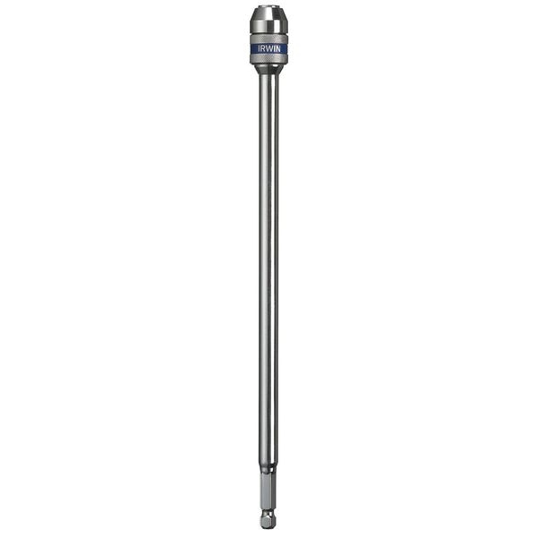 The Irwin 4935653 3/8" Bit Holder is a quick and easy way to keep your bits organized. It has a removable bit retainer, which makes it easy to switch between fasteners. The hex shank design of the bit holder makes it compatible with many types of tools, including ratchets and wrenches. With an overall length of 11 in., this hex shank holds 1/4" hex bits, and its drive size is 3/8". The quick change bit holder features a quick release that allows you to change bits without having to remove the entire tool from your socket set or screwdriver. Keep your bits organized with the Irwin 4935653 3/8" Bit Holder.