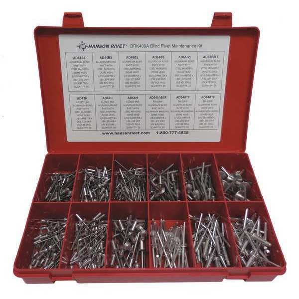 Blind Rivet, Product Type Blind Rivet, Body Material Aluminum, Head Type Dome, Material Grade/Class Ungraded, Mandrel Material Steel