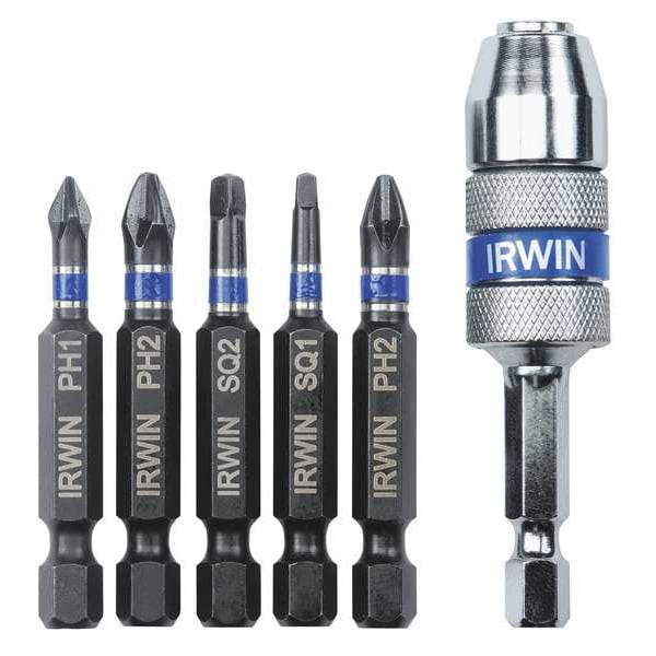 Driver Bit Set, No. of Pieces 6, Hex Shank Size 1/4 in, Fastening Tool Material Steel, Impact Rated Impact Rated, Impact, Includes (1) PH1, (1) SQ1, (1) SQ2, (2) PH2, Bit Length 1 1/4 in