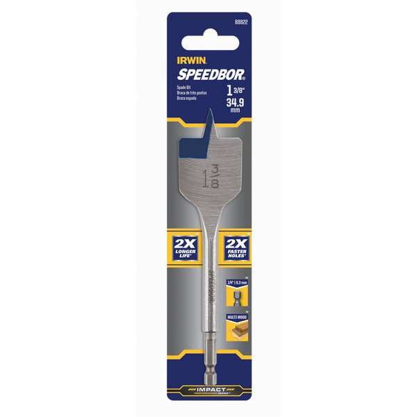 Spade Drill Bit, 1 3/8 in Drill Bit Size, Hex, Carbon Steel, Shank Diameter 1/4 in, Shank Hex Size 1/4 in, Overall Length 6 in, Bright (Uncoated)