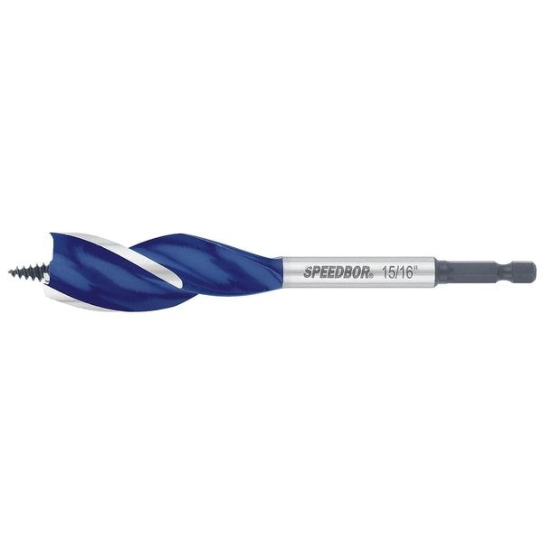 Speedbor, Hybrid Drill Bit, 15/16 in, 2 3/4 in Flute Length, 6 in Overall Length, Shank Diameter 1/4 in, Carbon Steel, Maximum Drilling Depth 4 in, Bright (Uncoated)