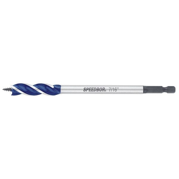 Speedbor, Hybrid Drill Bit, 7/16 in, 1 3/4 in Flute Length, 6 in Overall Length, Shank Diameter 1/4 in, Carbon Steel, Maximum Drilling Depth 4 in, Bright (Uncoated)