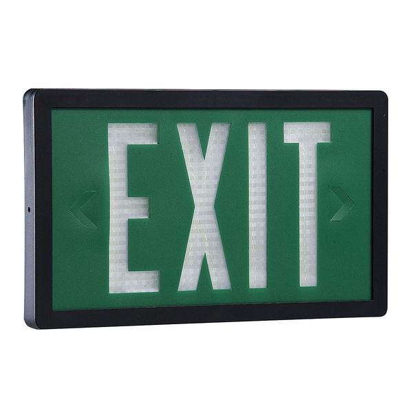 Self-Luminous Exit Sign, Green Background Color, 1 in Overall Depth, 8 1/2 in Overall Height, 14 in Overall Width, Directional Indicators Universal Field Selectable Chevrons, Plastic Housing Material, Life Expectancy 20 yr, Number of Faces 1, Mounting Location Ceiling, End, Wall, Wet Location Rated Environmental Rating, UV Stabilized Housing Finish, Lighting Technology Tritium, 20 Yrs. Manufacturers Warranty Length, Maximum Operating Temperature 176 Degrees F