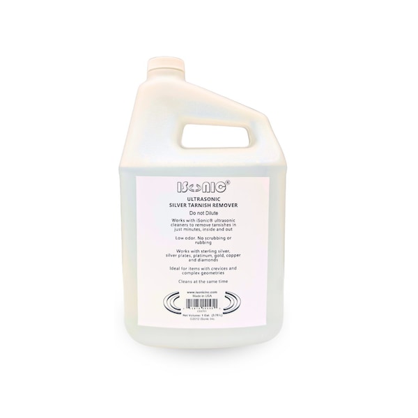 Revive the brilliance of your silver jewelry, flatware, and collectibles with iSonic Ultrasonic Silver Tarnish Remover-a professional-grade solution trusted by jewelers, silversmiths, and serious collectors. Formulated specifically for ultrasonic cleaning machines, this solution effortlessly removes tarnish, oxidation, and surface buildup from silver, gold, platinum, and copper in just one cleaning cycle-without scrubbing or harsh abrasives.Perfect for detailed items like silver chains, antique rings, intricate bracelets, collectible coins, silverware, heirlooms, and ornate decor, the solution reaches into crevices and delicate filigree that polishing cloths simply can't touch. It restores luster while protecting the integrity of precious metals, making it ideal for regular care and long-term preservation.No dilution required. Just pour directly into your ultrasonic cleaner and let the machine do the work. Its low-odor formula is less harsh than traditional chemical dips, making it suitable for use in home environments, studios, repair shops, or retail jewelry counters.Choose the 8 oz 2-pack for personal or occasional use, or the 1-gallon size for larger ultrasonic machines and high-volume cleaning in professional settings.