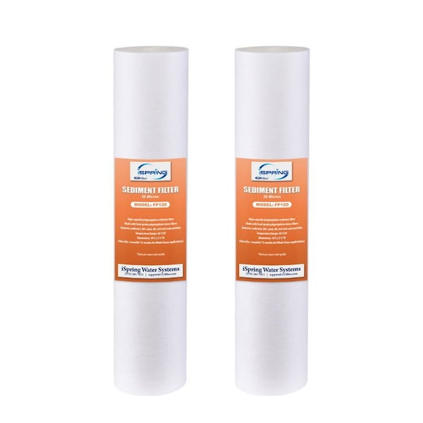 iSpring FP120X2 20 Micron 10"x2.5" Universal Sediment Filter Cartridges, 15,000-Gallon, Multi-Layer, NSF Certified, 2-Pack, White, 2 Piece