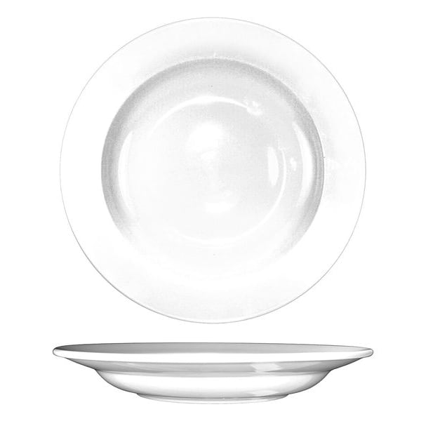 Pasta Bowl, Color European White, Diameter 11 7/8 in, Overall Width Not Applicable, Overall Length Not Applicable, Overall Height 1 7/8 in, Product Type Pasta Bowl, Capacity 20 oz, Material Porcelain, Pattern Dover, Package Quantity 12
