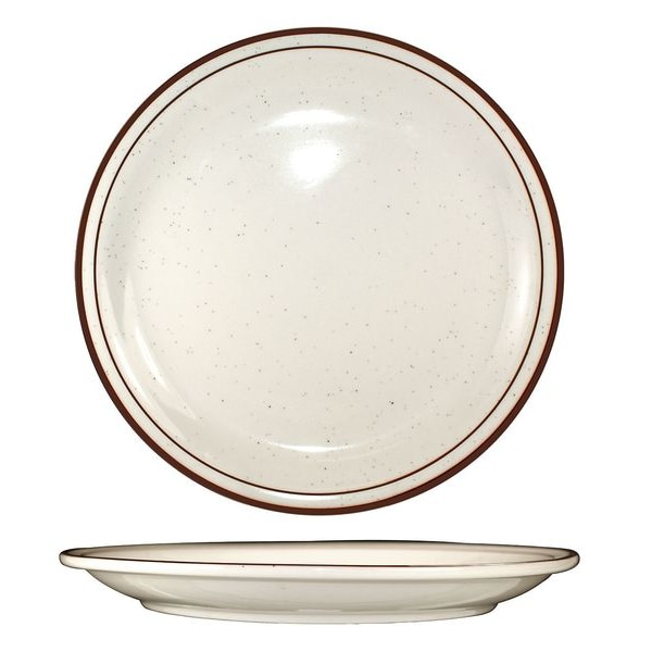 Plate, Product Type Plate, Color American White, Brown Speckle, Diameter 9 1/2 in, Material Ceramic, Overall Length Not Applicable, Overall Width Not Applicable, Pattern Granada, Package Quantity 24