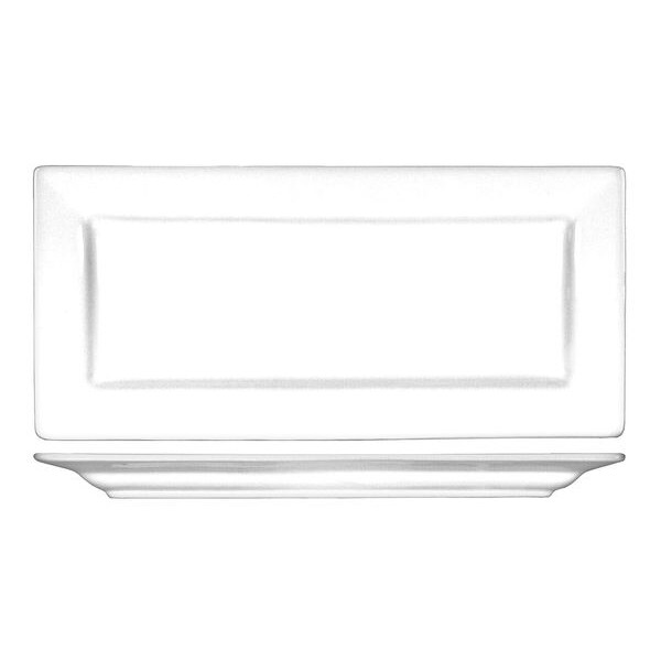 Platter, Product Type Dinnerware Platter, Color Bright White, Diameter Not Applicable, Handle Included No, Material Porcelain, Maximum Temperature Resistance 350 Degrees F, Overall Length 14 in, Overall Width 7 in, NSF Certified No, Pattern Elite, Package Quantity 12