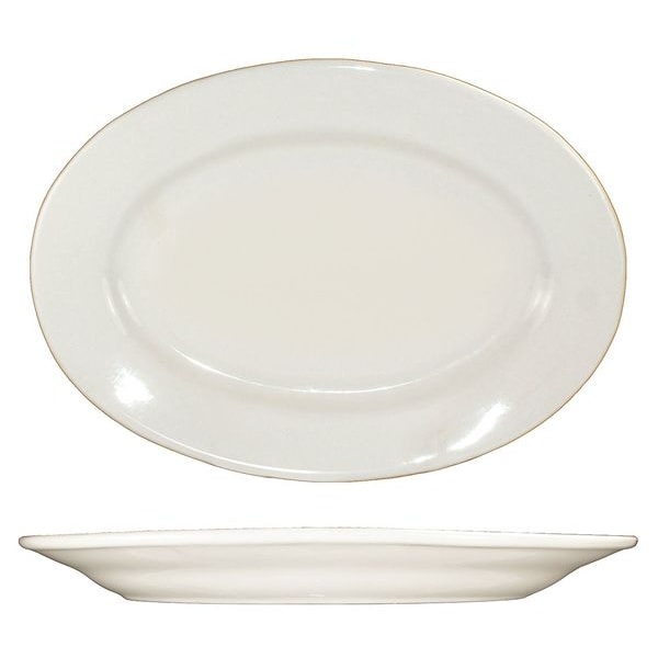 Platter, Product Type Dinnerware Platter, Color American White, Diameter Not Applicable, Edge Style Wide Rim Rolled, Handle Included No, Material Stoneware, Maximum Temperature Resistance 350 Degrees F, Overall Length 9 1/4 in, Overall Width 6 3/8 in, NSF Certified No, Pattern Roma, Package Quantity 24